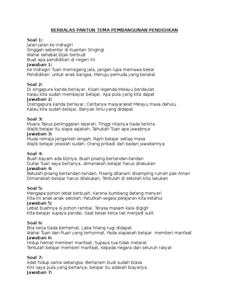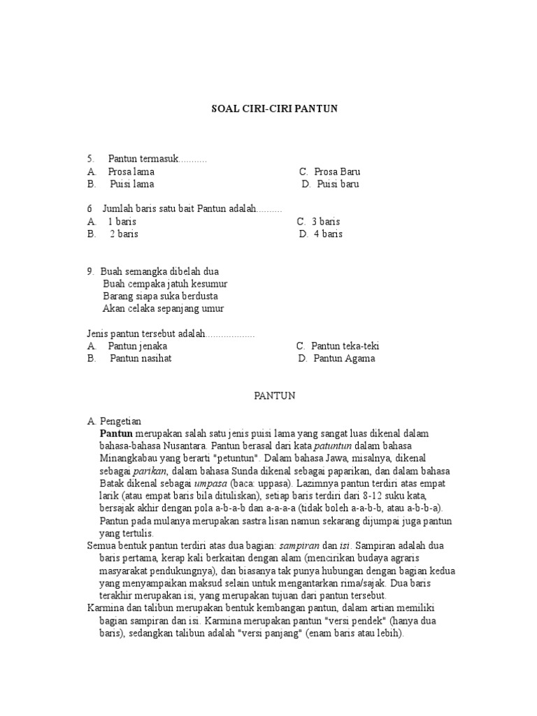 Latihan Soal Pantun Kelas 12 Pilihan Ganda Beserta Jawabannya from imgv2-2-f.scribdassets.com Contoh soal pantun pilihan ganda beserta jawabannya kelas 7. We did not find results for: Check spelling or type a new query. Maybe you would like to learn more about one of these?