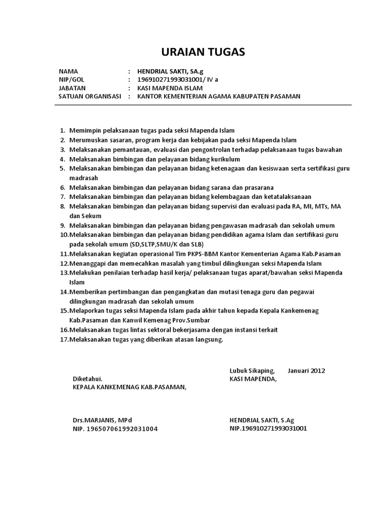 Uraian Tugas Penyusun Program Anggaran Dan Pelaporan Kemenag Tulisan from image.slidesharecdn.com Maybe you would like to learn more about one of these? Uraian tugas jfu kementerian agama. Check spelling or type a new query. We did not find results for: